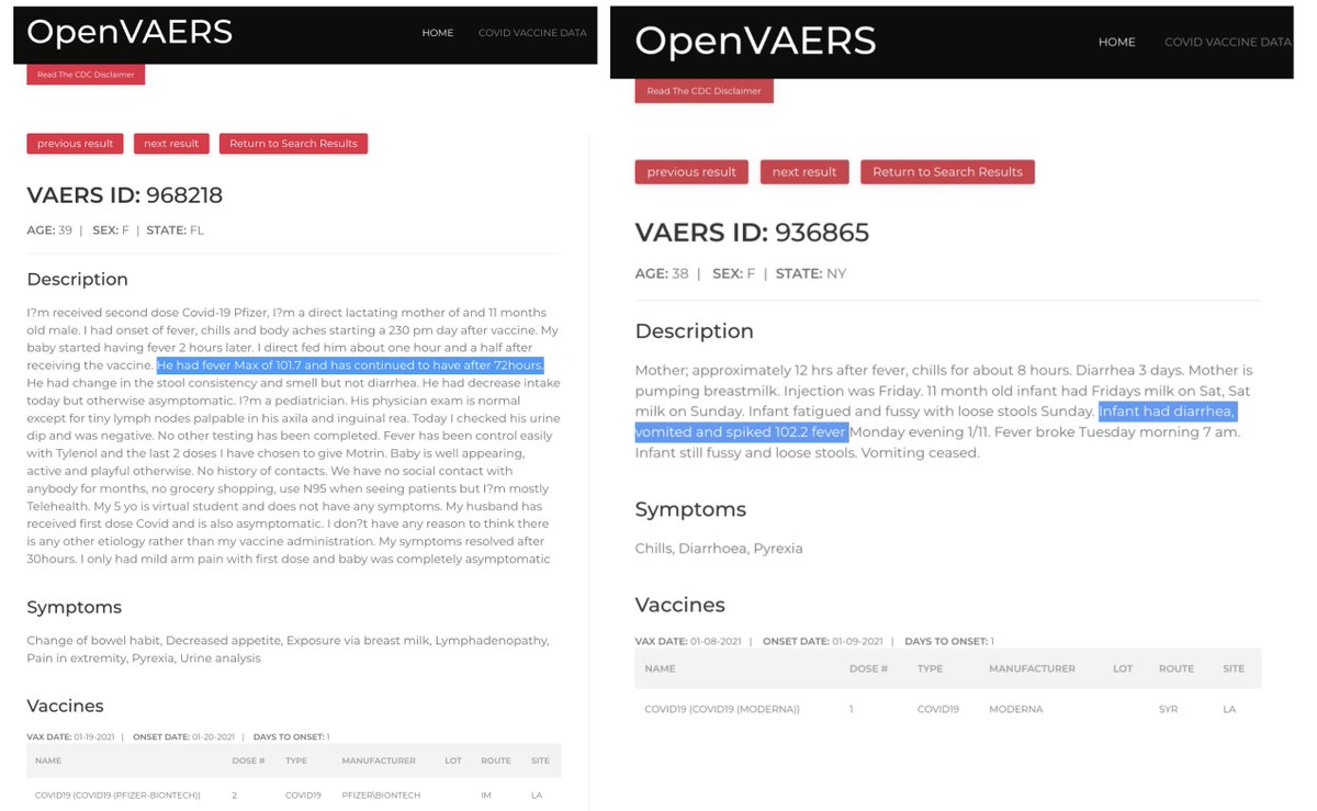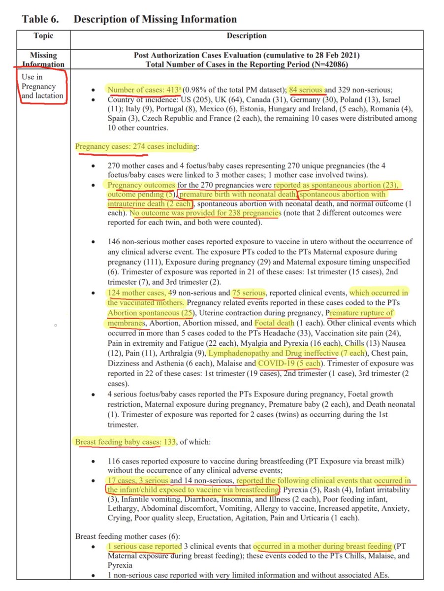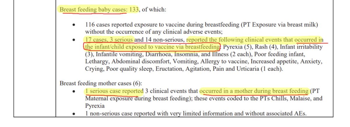 THERE WERE 133 "BREAST FEEDING BABY CASES" IN PFIZER'S POST-AUTHORIZATION REPORT OF ADVERSE EVENTS THROUGH FEBRUARY 28, 2021