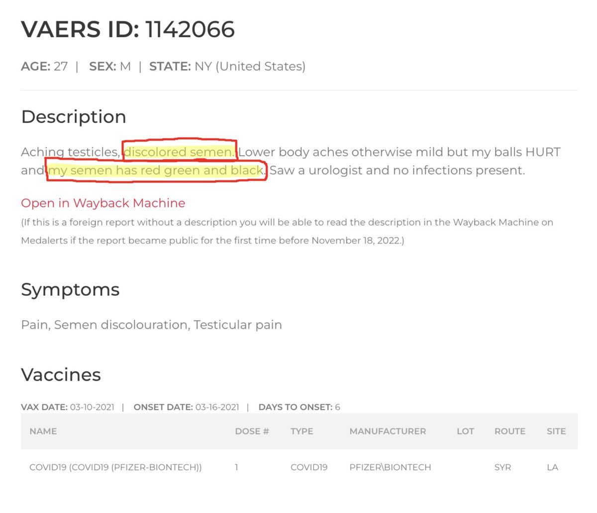 Considering the discoloration in breast milk reported by COVID "vaccinated" mothers, it seems prudent to see if the same phenomenon is occurring with other bodily fluids. In regard to semen, for example, there are indeed a… https://t.co/n9SFRwmbYRtwitter.com/i/web/status/1…