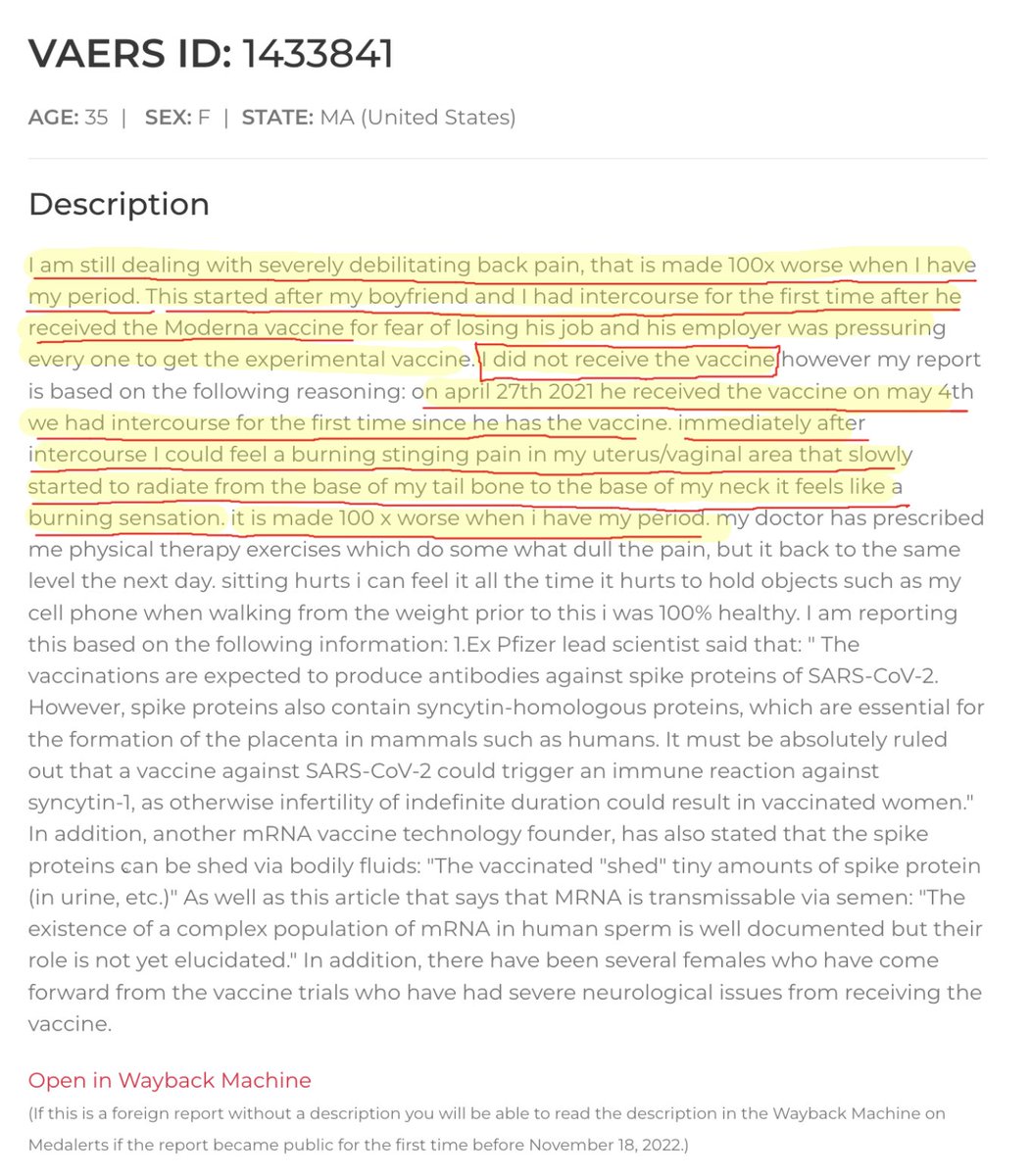 "VACCINATED MEN WHO HAVE SEX WITH THEIR PARTNER WHO ARE UNVACCINATED CAN TRANSFER SPIKE PROTEIN."