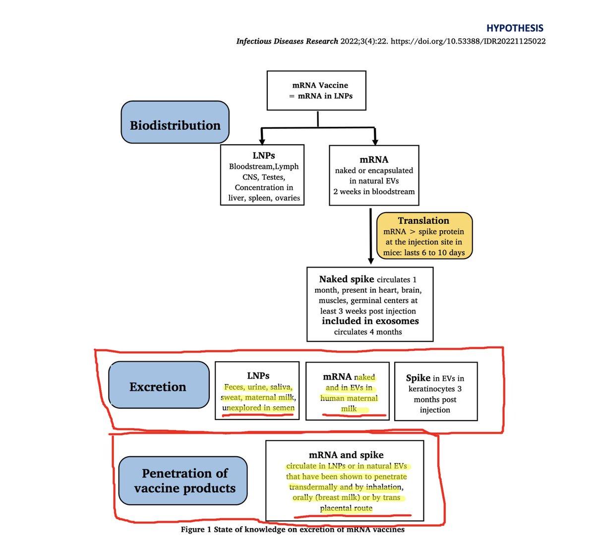 Banoun's study in Infectious Disease Research highlighted earlier in the thread (re: shedding in breast milk), also highlights several ways the COVID injections could be "excreted" from people's bodies and then "penetrate" other people.