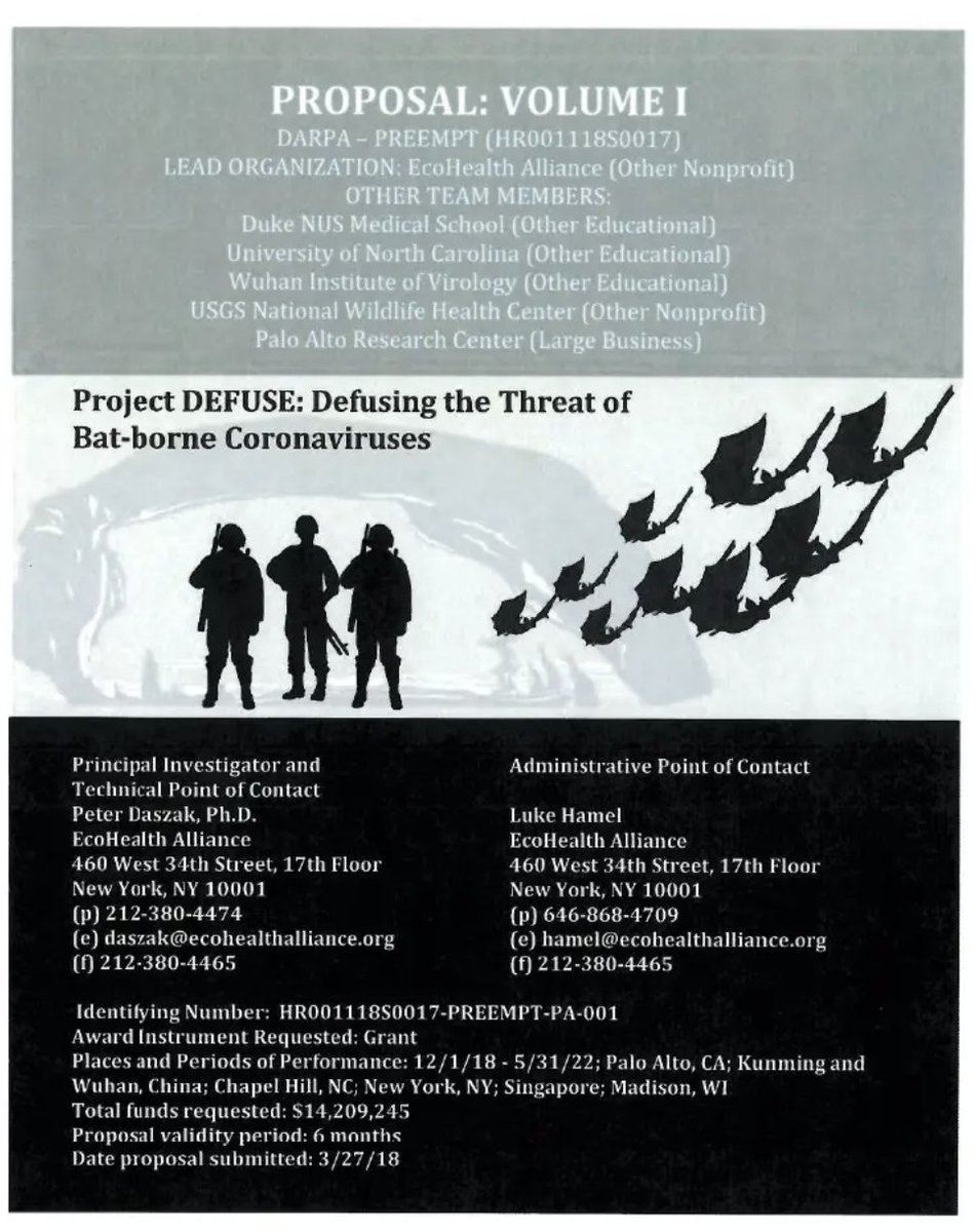 Banoun also highlights in her interview with the Corona Investigative Committee mentioned/shown earlier in the thread(1) a proposal presented to DARPA by EcoHealth Alliance—with Peter Daszak as the Principal Investigator (PI)—dubbed Project DEFUSE(2). DEFUSE, Banoun notes,… https://t.co/zU7rGzBpUztwitter.com/i/web/status/1…