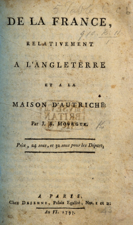 Le syntagme «révolution industrielle» est employé dès la fin du XVIIIe siècle. En 1797, on le retrouve sous la plume du négociant et homme politique Jacques-Antoine Mourgue, dans un livre où il analyse la rivalité économique entre la France et le Royaume-Uni. 2/25
