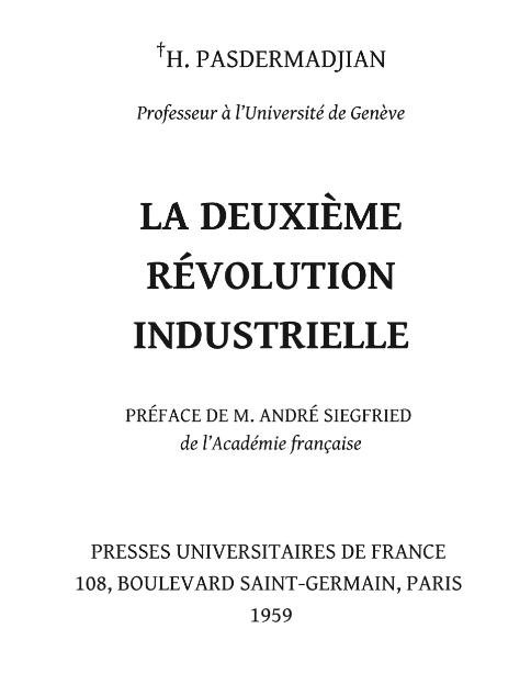D’après Hrand Pasdermadjian (1959), les années 1870 inaugureraient même une «deuxième révolution industrielle», caractérisée par l’usage du pétrole, la production d’électricité, la sophistication de la division du travail et l’accélération de la croissance. 14/25