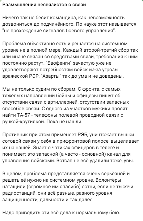 2/ "Nothing infuriates a commander more than the inability to get through to a subordinate. The problem objectively (still) exists and is not fully resolved at the systemic level. Every second or third volunteer donation is dealing in one way or another with comms tech..."