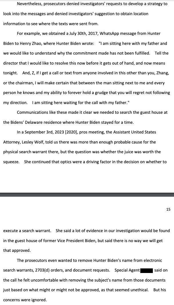 "If search warrants or witness interviews or document requests that include the actual subjects' names are not allowed, for example, that is simply a deviation from the normal process that provided preferential treatment, in this case to Hunter Biden." waysandmeans.house.gov/wp-content/upl…