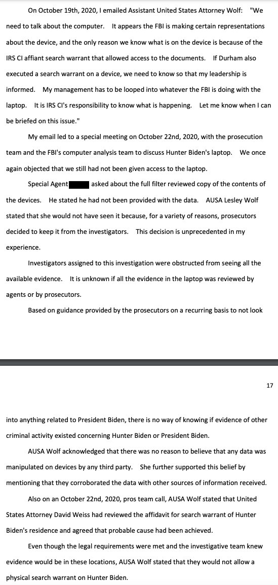 "Investigators assigned to this investigation were obstructed from seeing all the available evidence. It is unknown if all the evidence in the laptop was… https://t.co/Zuj1QVOWfitwitter.com/i/web/status/1…