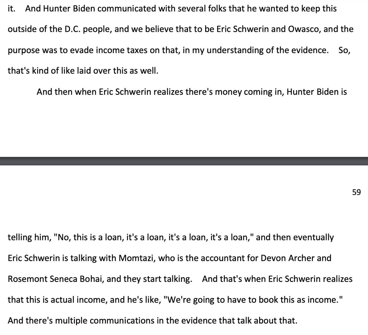 "Owasco was set up...to take in these type of consulting fees and to withhold taxes from it. And Hunter Biden communicated with several folks that he wanted to keep this outside of the D.C. people, and we believe that to be Eric Schwerin and Owasco, and the purpose was to evade… https://t.co/q0GMPX2zrdtwitter.com/i/web/status/1…