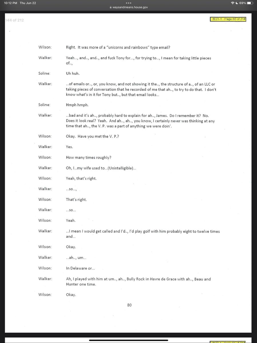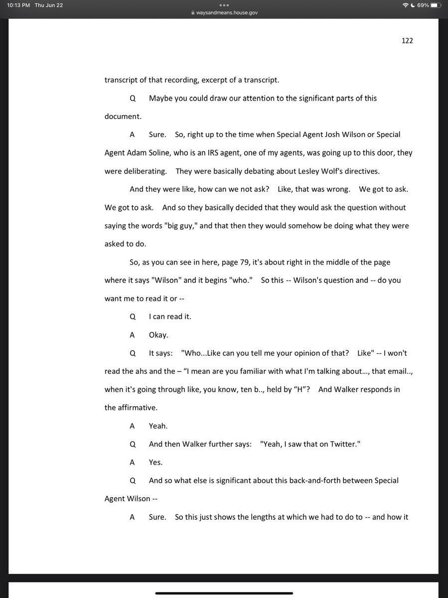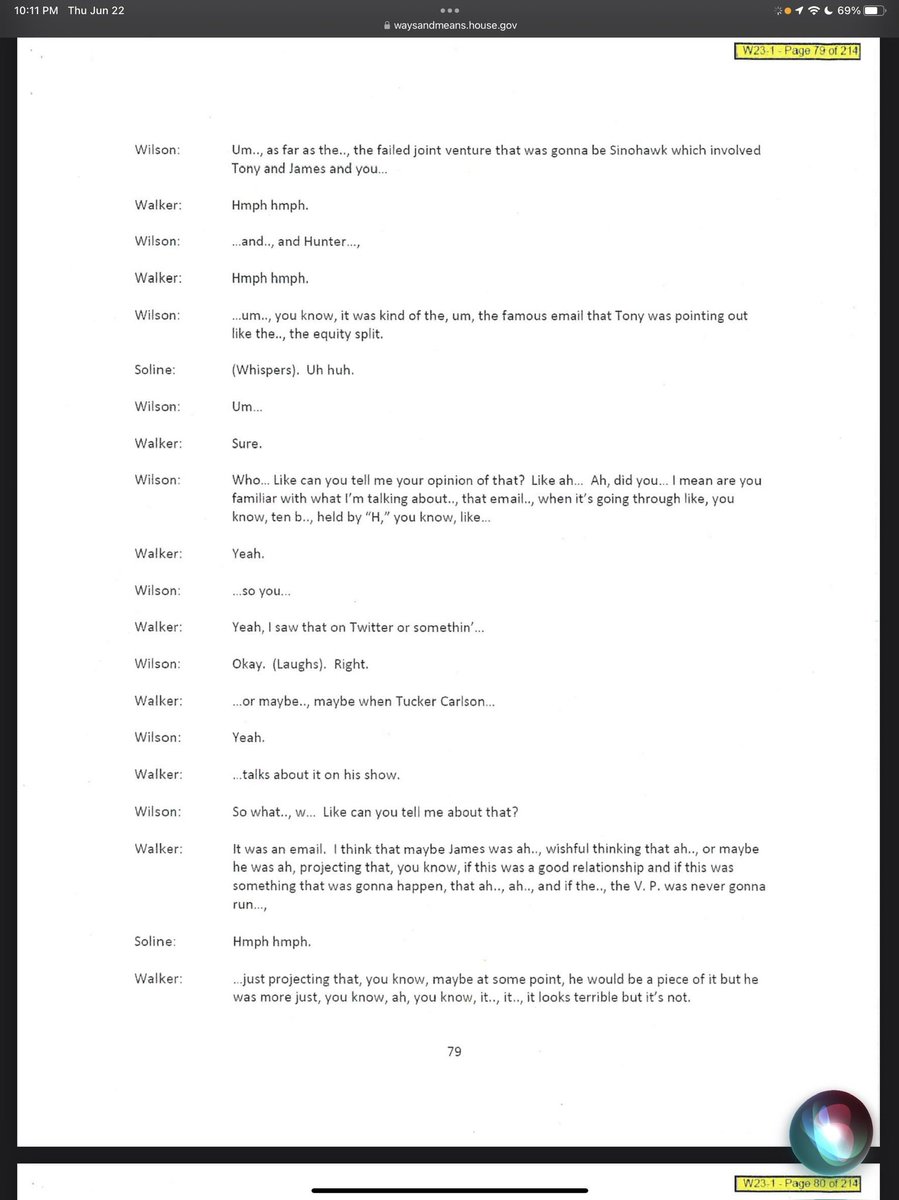 Interview with a witness - how they are trying to get around asking about the text that proves Biden walked by as a prop to help Hunter start a business. See next.