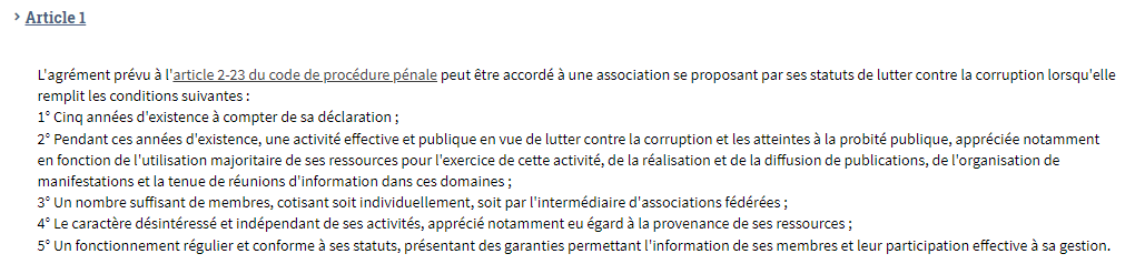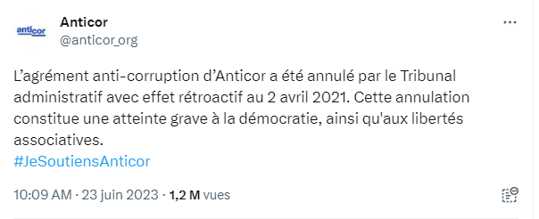 🇫🇷 "Tellement résolu que ce sont des anciens membres d'ANTICOR qui ont saisi le tribunal administratif en annulation de l'agrément. Et au jour de l'agrément, ANTICOR ne satisfait pas aux obligations"