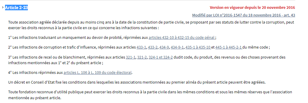 🇫🇷 "C'est l'article 2-23 du code de procédure pénale qui permet à ces associations d'intervenir"