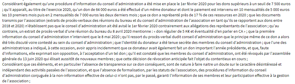🇫🇷 "Et puis ce n'est pas le seul problème, le texte exige transparence et désintéressement, ce qui implique qu'on connaisse l'identité des donateurs, surtout des gros. Des fois que le financement poursuivrait d'autres buts qu'altruistes"