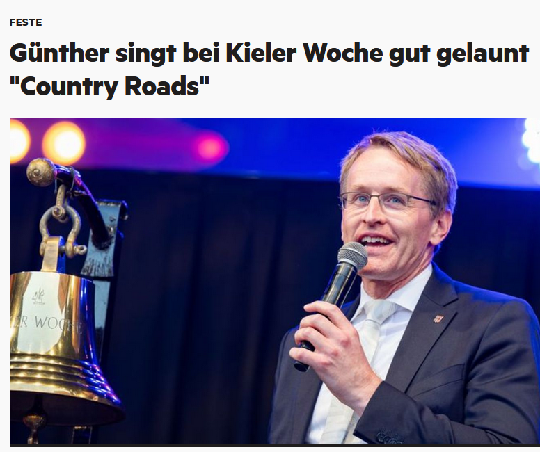 Vorläufiger Höhepunkt einer tollen Entwicklung: Auf der Kieler Woche singt Daniel Günther zusammen mit den "Allgäuer Huansöhnen" Eric Claptons Hit "Layla". Beim Stagediving kugelt er sich danach die Schulter aus, renkt sie sich nach einer Flasche Oldesloer aber selbst wieder ein.