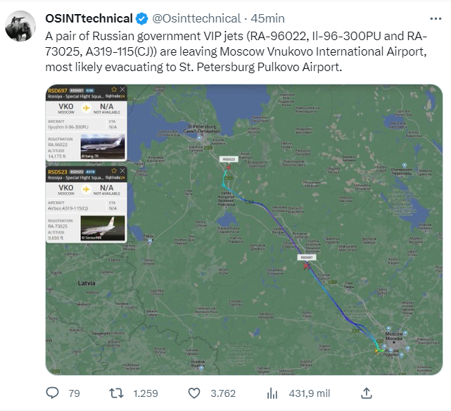 Putin no está usando fuerzas terrestres para frenar a la columna de Wagner que se dirige a Moscú. Solo su fuerza aérea