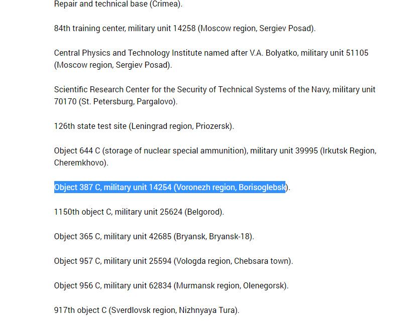 Para los que preguntan respecto a la posibilidad que Wagner se haga con ojivas nucleares, no encuentro a la guarnición en Rostov dentro del listado de depósitos activos con esa clase de armas
