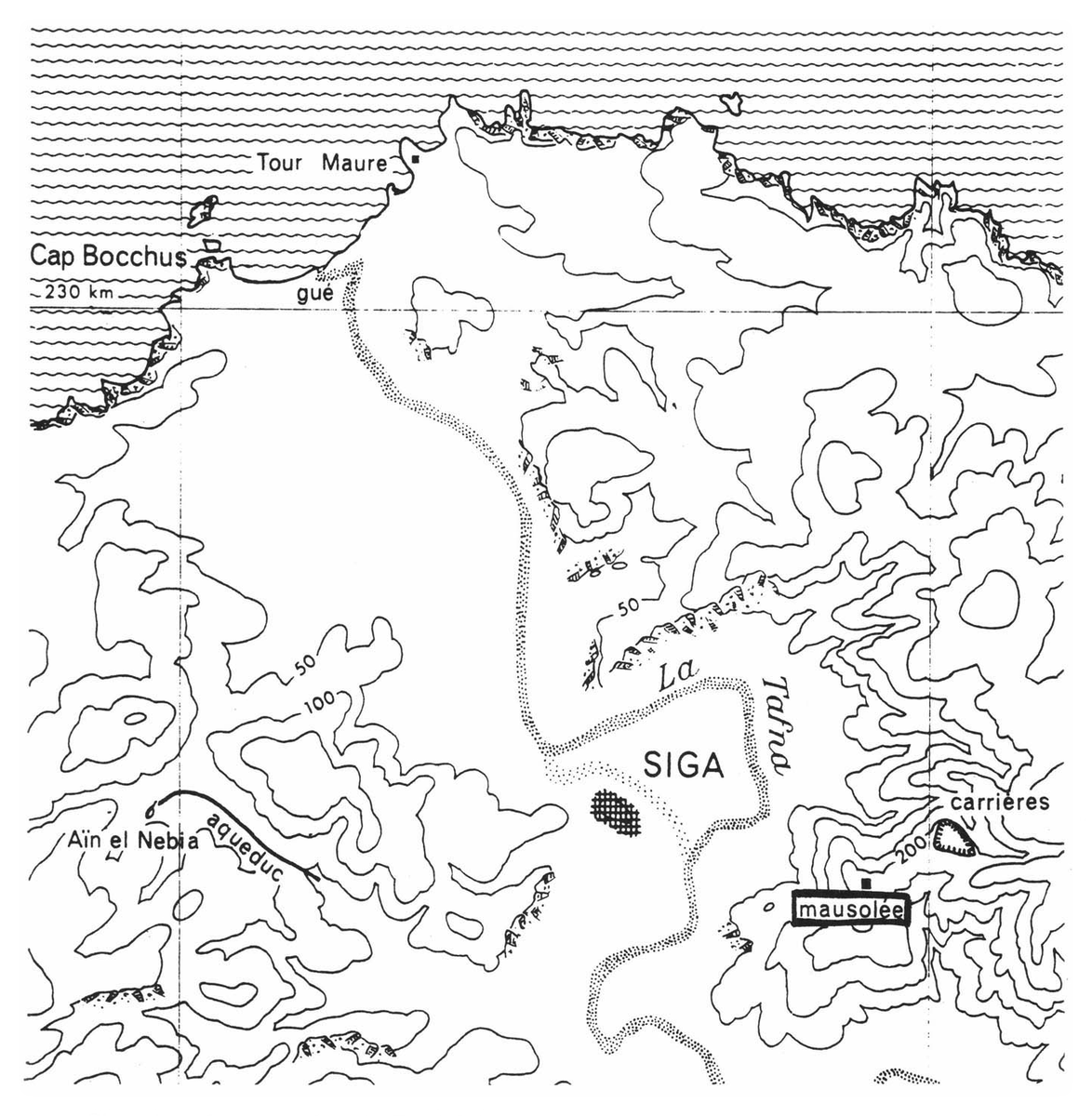 The mausoleum stands on a 221m-high peak of Jbel Skouna, overlooking the river Tafna and the ruins of ancient Siga, capital of King Syphax (Masaesyle dynasty). It was built near a group of tumuli, just like the Medracen further confirming its dynastic nature.