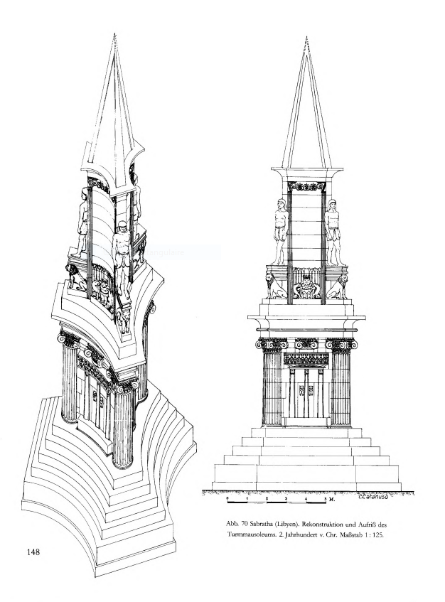 Its plan resembles other mausolea, such as those at Sabratha (Mausoleum B) and Djerba (Henchir Bourgou), but it was far larger and more imposing: about 15m wide and likely at least 30m high, making it the largest tower tomb in North Africa.