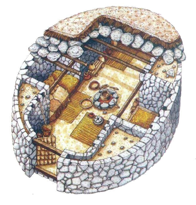 - Lived in caves (natural & artificial), dry-stone houses/huts
