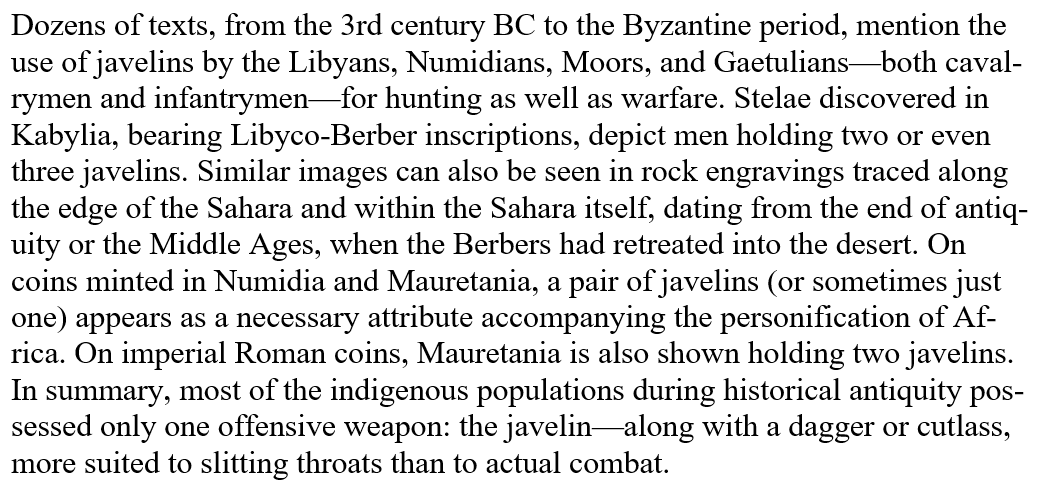 When it comes to describing the horsemen and infantry of North Africa, ancient authors almost never mention the use of the sword among them and instead emphasize the use of the javelin or even the cutlass. But what is the reality?