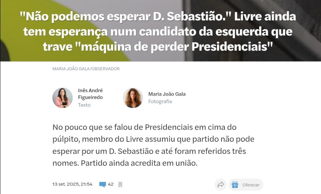 13Set2025: "Livre ainda tem esperança num candidato de esquerda que trave máquina de perder Presidenciais." (no Observador)