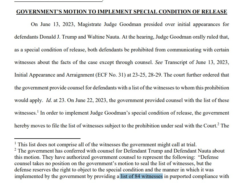 Smith is not only attempting to keep this case under seal from the American people but impose absurd restrictions on the former president and Walt Nauta as to how evidence can be viewed. Cannon denies Smith's demand to prevent Trump and Nauta to communicate with at least 84… https://t.co/AiARrU38KRtwitter.com/i/web/status/1…