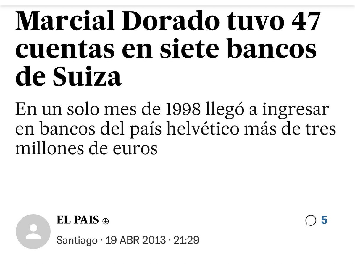 Según la investigación que analiza los movimientos bancarios y societarios entre 1994 y 2003, año en el que fue detenido Dorado por tráfico de cocaína, este llegó a tener hasta 47 cuentas abiertas en 7 bancos suizos.