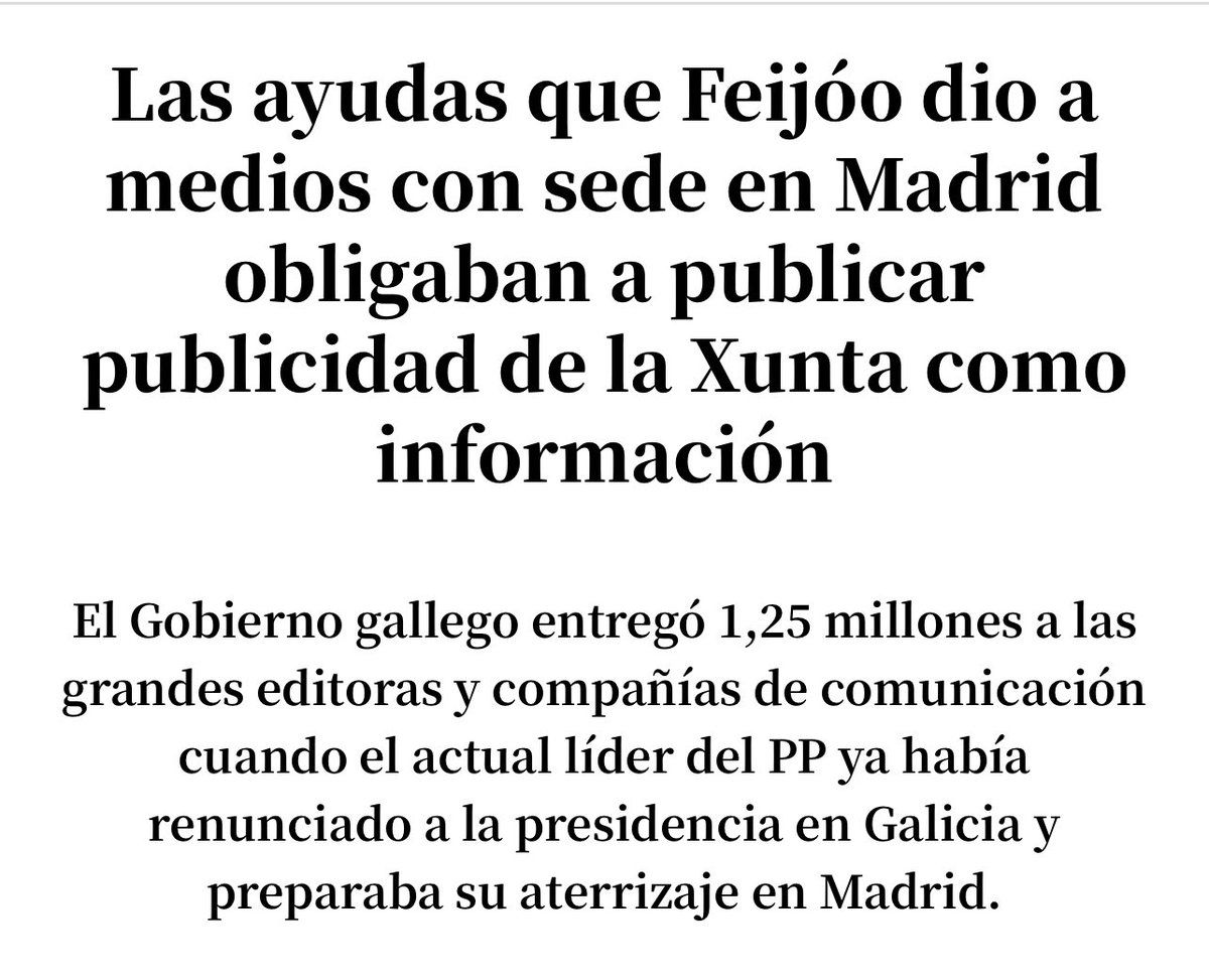 Feijóo pagó 45 millones de euros a empresas editoras de medios de comunicación privados mediante ayudas a dedo y convenios opacos de propaganda institucional, dirigidos a que la prensa alabara su acción política durante sus 13 años en la Xunta.