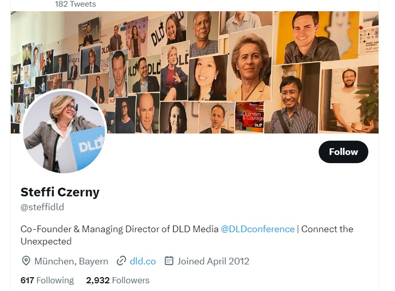 DLD founder Steffi Czerny and Clemens Boersig, chairman of Deutsche Bank AG . DLD is a global conference network on innovation, digital, science and culture which connects business, creative and social leaders, opinion-form science and culture which connects business.."