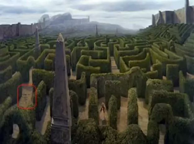 Si todo esto no da pistas suficientes, ¿Qué hace Jareth cuando por fin Sarah le alcanza? La viste de mujer mayor e intenta seducirla. Todo es embriagador y todo el mundo lleva máscaras. Le promete estar a sus pies y ella se entrega a él y le da al niño (la infancia y la pureza).