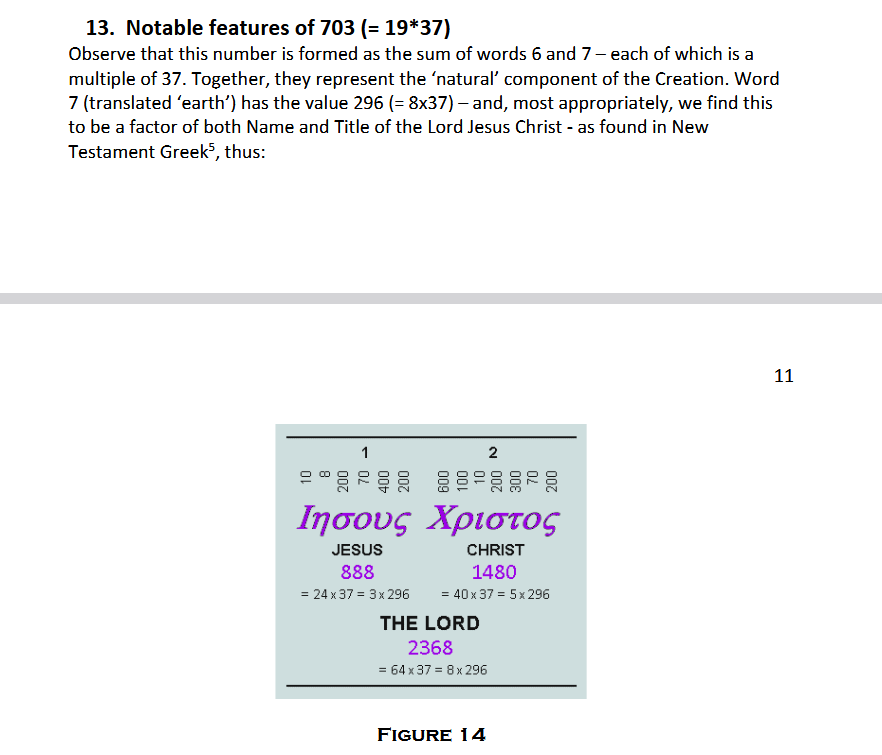 Word 7 (translated ‘earth’) has the value 296 (= 8x37) – and, most appropriately, we find this to be a factor of both Name and Title of the Lord Jesus Christ