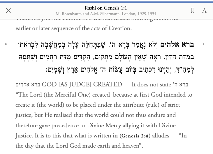 But there is some other thing about it, viz. that in the first verse of Genesis there is mentioning of "elohim" and not of "hashem"