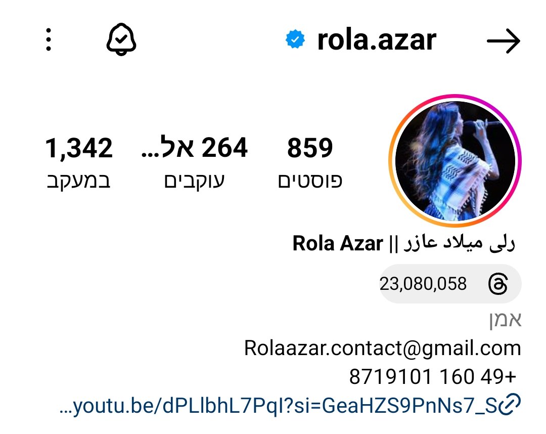 רֻלַא עאזר זמרת מנצרת עם 264 אלף עוקבים ועוד רבים ביתר הרשתות: