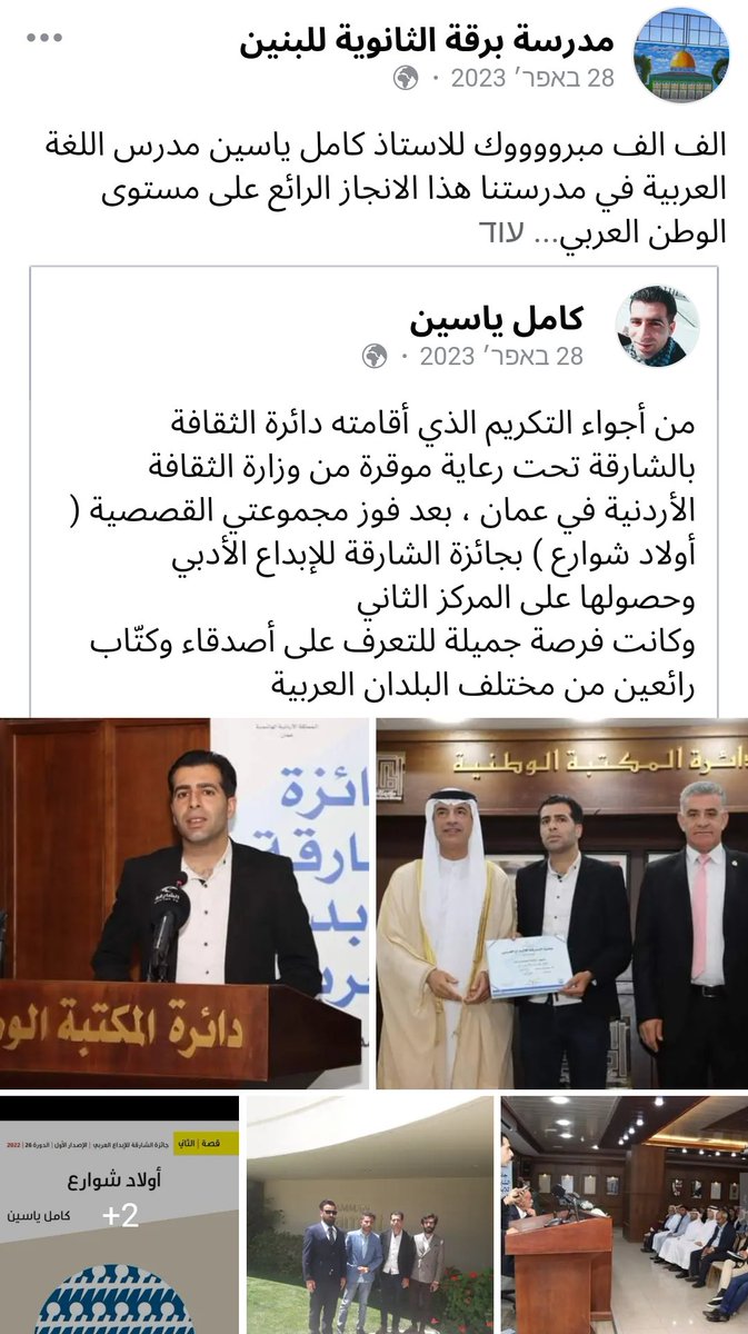 ולקינוח, כמה פוסטים של כאמל יאסין, המורה לערבית בבית הספר לבנים בברקה שזכה לתשבוחות בעמוד בית הספר: