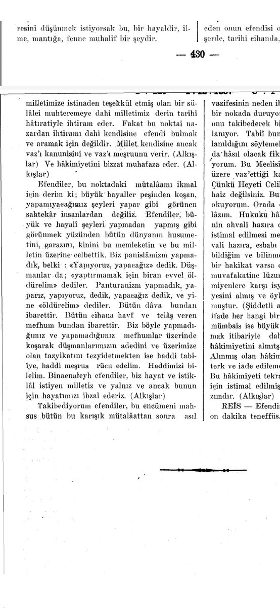 Mustafa Kemal Paşa'nın 1 Aralık 1921 günkü TBMM konuşmasından Panislamizm ve Pantürkizm bölümü: