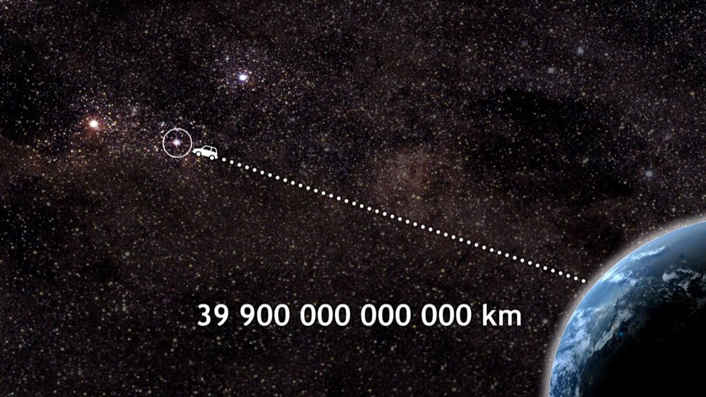 En effet, beaucoup d'étoiles ont une dimension similaire à celle du soleil... mais les étoiles sont très loin! La plus proche du soleil, Proxima du Centaure (on y reviendra), est à 4 années-lumières.
