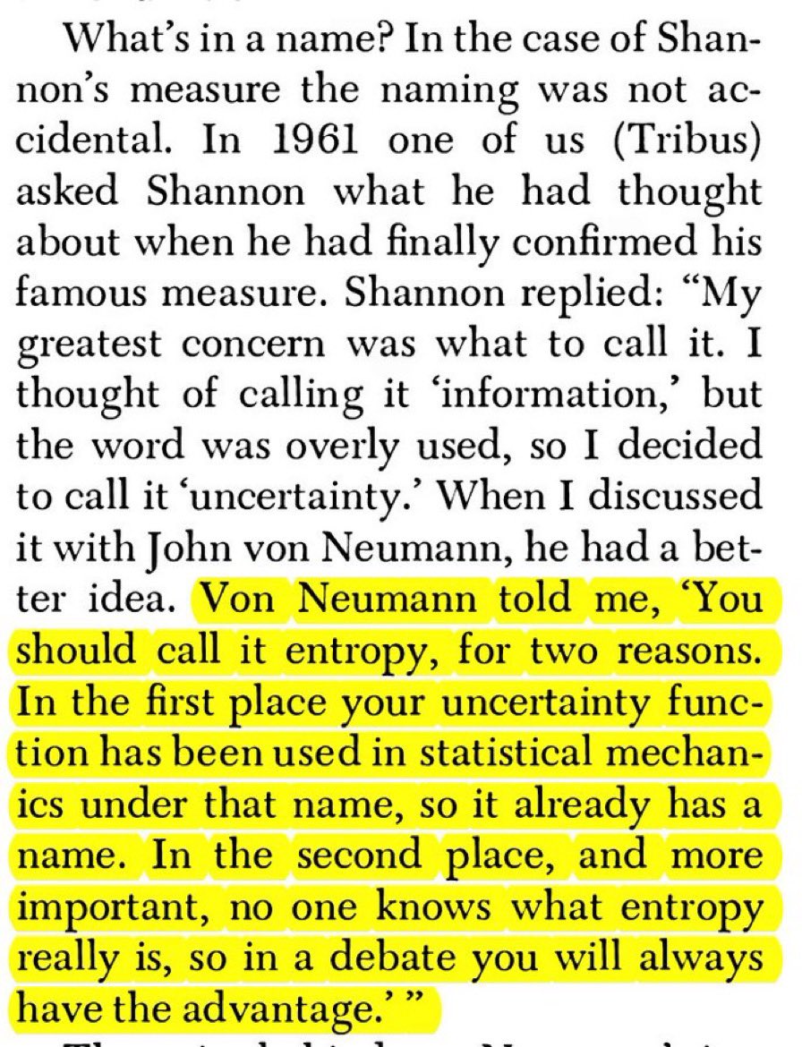 In fact, the term “entropy” was apparently suggested by von Neumann *because* it was hard to understand. jstor.org/stable/24923125