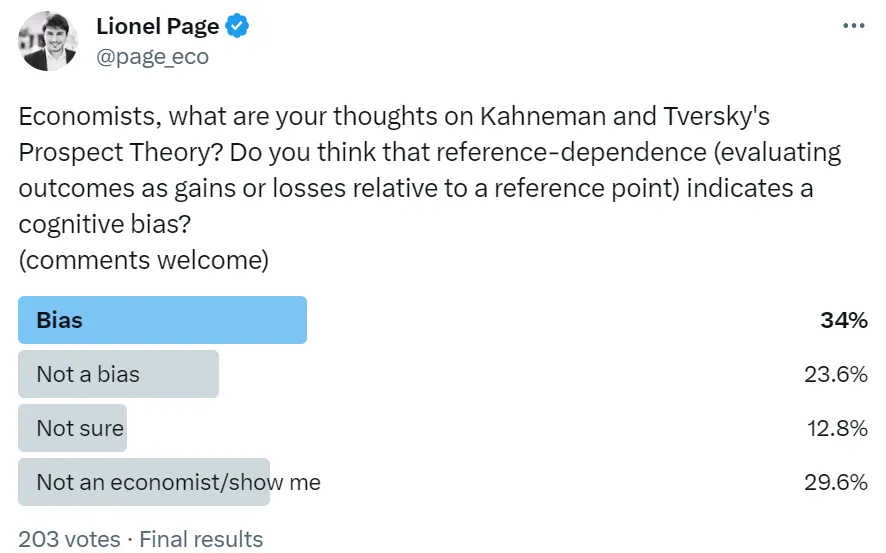 Another question is whether these "reference-dependent" preferences are a cognitive flaw. Kahneman and Tversky seemed to suggest so, pointing out that economic rationality is more in line with satisfaction being a function of absolute outcomes. Here again, I asked economists: