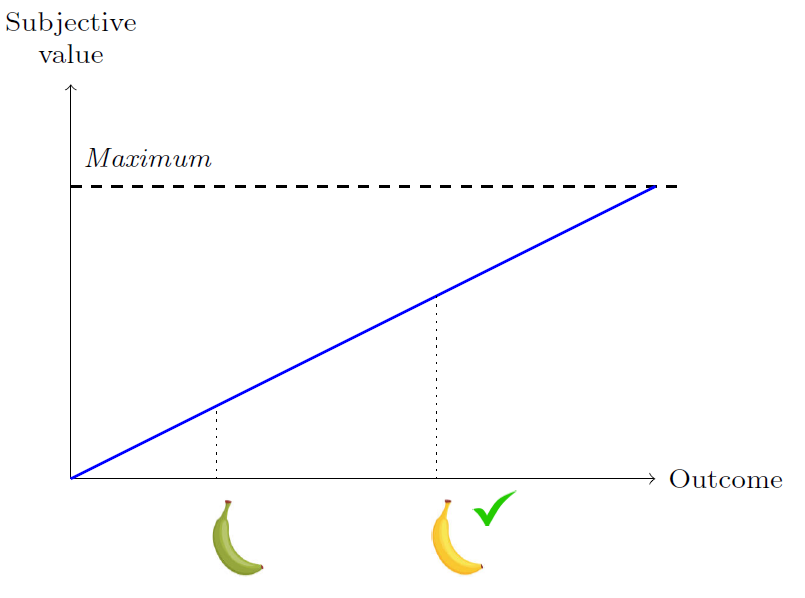But our neuronal processes face biological constraints when generating signals of satisfaction. Let's consider two of them: 1) These signals must be bounded (limited number of neurons) 2) They can't be perfectly precise