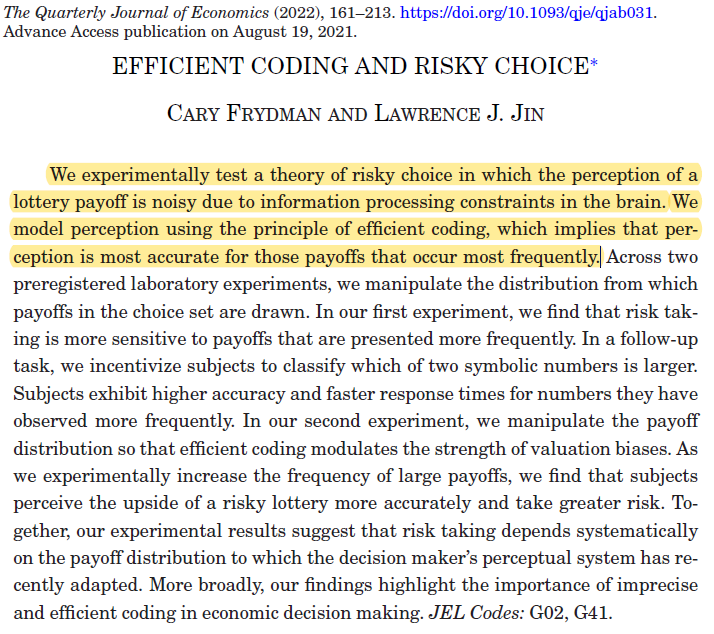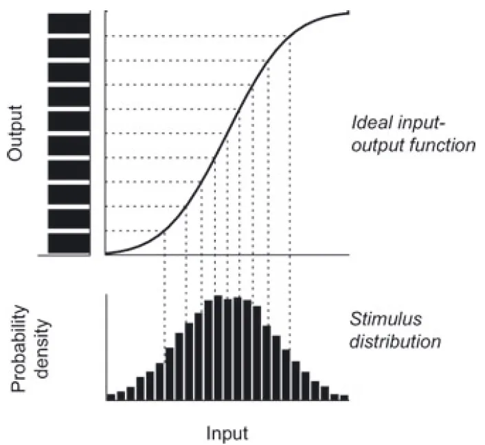 Beyond economics, this explanation is supported by results from neuroscience indicating that sensory systems respond to stimuli by following their distribution, an idea called "efficient coding". (Figure from Louie and Glimcher 2012)