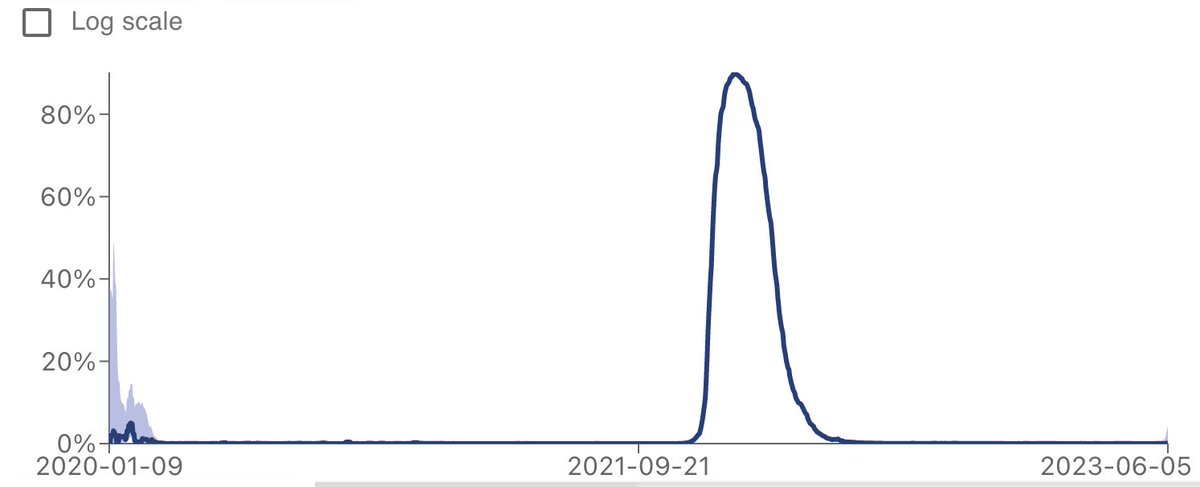 The best proxy for this is BA.1, a lineage that quickly became world dominant in Dec 2021, and as quickly disappeared in March 2022. 2/