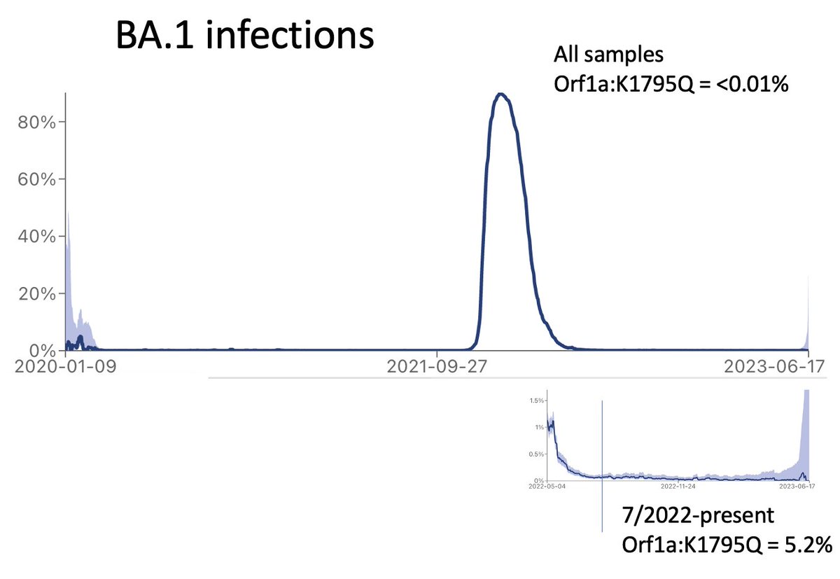The frequency of K1795Q in BA.1 went from <0.01% overall, to over 5% from samples collected after July 2022. 4/