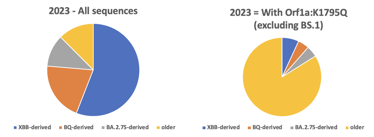 However, among sequences from 2023 containing K1795Q (excluding BS.1), about 84% were ‘older’. 8/