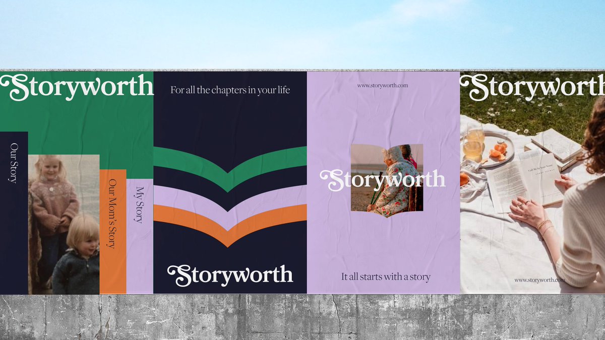 2. Storyworth (2022). I love where we landed with the final brand but I still liked this totally different early direction. Work done with @daniellelaroy and Paladar Studio.