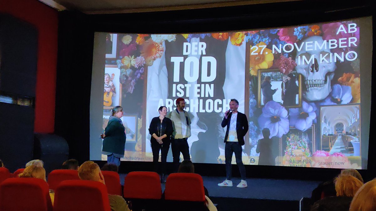 1/n 'Der Tod ist ein Arschloch' ist sehenswert, weil er im Gestus u in vieler Hinsicht unprätenziös ist. Nach dem Film gab es eine muntere Diskussion mit dem Publikum. Der mit der roten Mütze ist #EricWrede, der mit dem schwarzen Jackett #MichaelSchwarz.