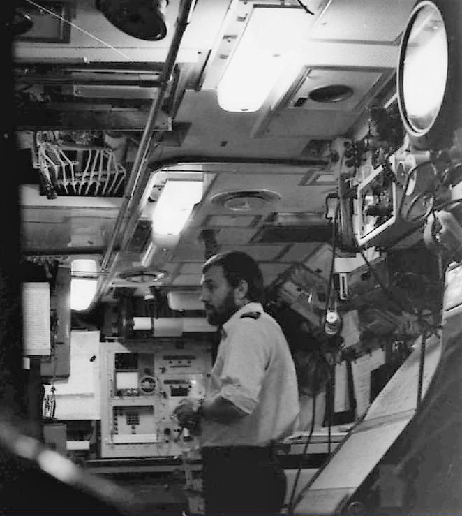 At around 1815z, Valiant was at periscope depth. The mood was relaxed and the off-duty crew was watching Das Boot, the World War II submarine classic. This is Valiant Control Room in the 1982 the war patrol: