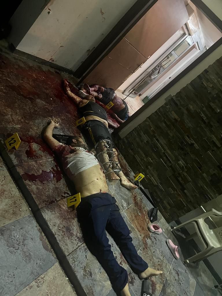 Kike, Ronald, Ray, alcanzaron a salir a un pequeño patio en ropa deportiva y fueron recibidos x ráfagas de fusil, padre e hijos quedaron tirados en el piso, Robert salió después y también fue atacado, quedó herido. El mercenario fue sacado del lugar en una camioneta Duster Blanca