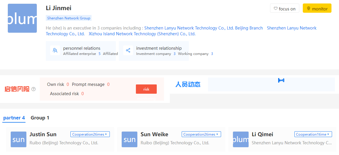 But I believe it may be the ex-wife of Sun Weike, who lives outside of China, hence they feel safe filing her name on documents.