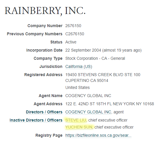 In fact, Steve Liu, Jennifer Jiang, Yiying Jiang and Yiyang Jiang do not show up as the officers of any Singapore company.