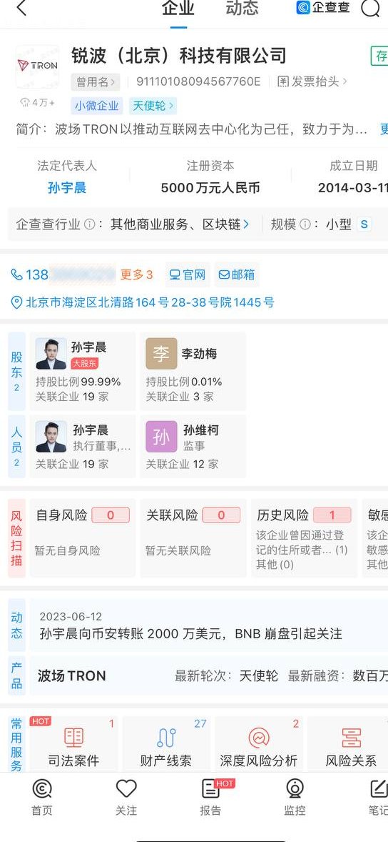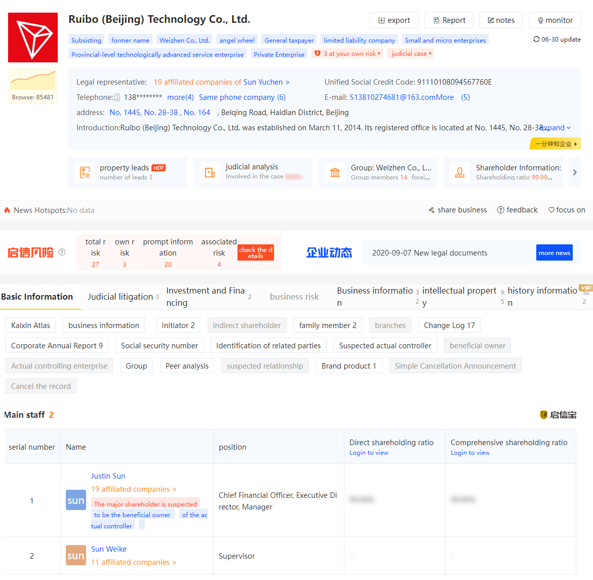 One of these companies is Ruibo Bejing Technology Company, which Justin Sun is listed as an exec of, and has the Tron logo as its logo.