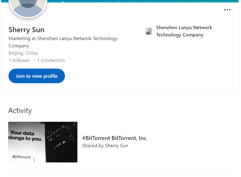 First is the profile of Sherry Sun, who works there, who has only ever shared stories of Bittorrent.