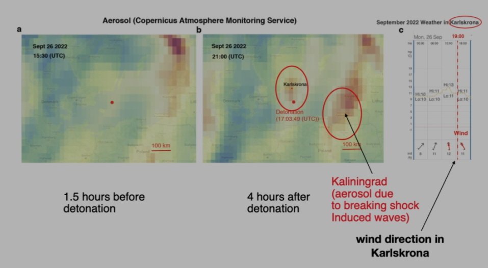 Über der Explosionsstelle ist 4 Std nach der Detonation eine ausgeprägte Aerosolwolke von bis zu 100 km Ausdehnung entstanden, die sich auf Kaliningrad zu bewegt. Ein solches Phänomen entstehe in diesem Ausmass nicht bei einer deutlich kleineren Sprengladung. 5/